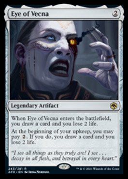 I don’t care how bad or how good this will be, I will be trying to build Vecna in every single format that I can. Vecna being one of the most notoriously evil legends of all DND, it feels wrong not to dedicate my life to the service of returning them to form. WIth how restrictive the triple black casting cost on The Book of Vile Darkness, I can’t see Vecna having much viability in any format. I will jam the three pieces in my K’rrilk, Son of Yawgmoth deck for EDH but that’s about it. In terms of Standard, I think the Eye of Vecna could have legs in Mono-White. Recurrable card draw for a deck that gains life is absolutely worth experimenting on. But for now, the creation of Vecna will rest solely in the jank factory.